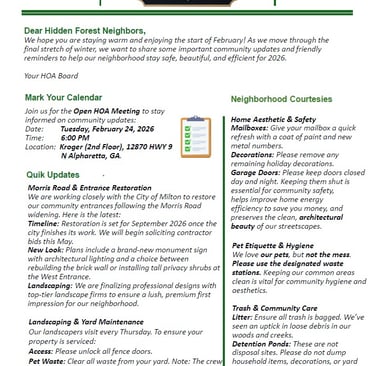 HIDDEN FOREST NEWSLETTERS
